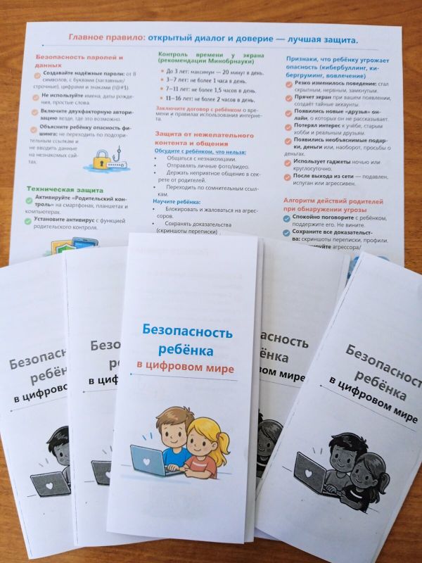 Материалы предоставлены Федеральным центром "Профилактика". Материалы содержат большое количество рекомендаций, способствующих формированию навыков безопасного пользования интернет ресурсами, а также чёткие инструкции по использованию паролей, встроенных функций платформ, антивирусных программ.